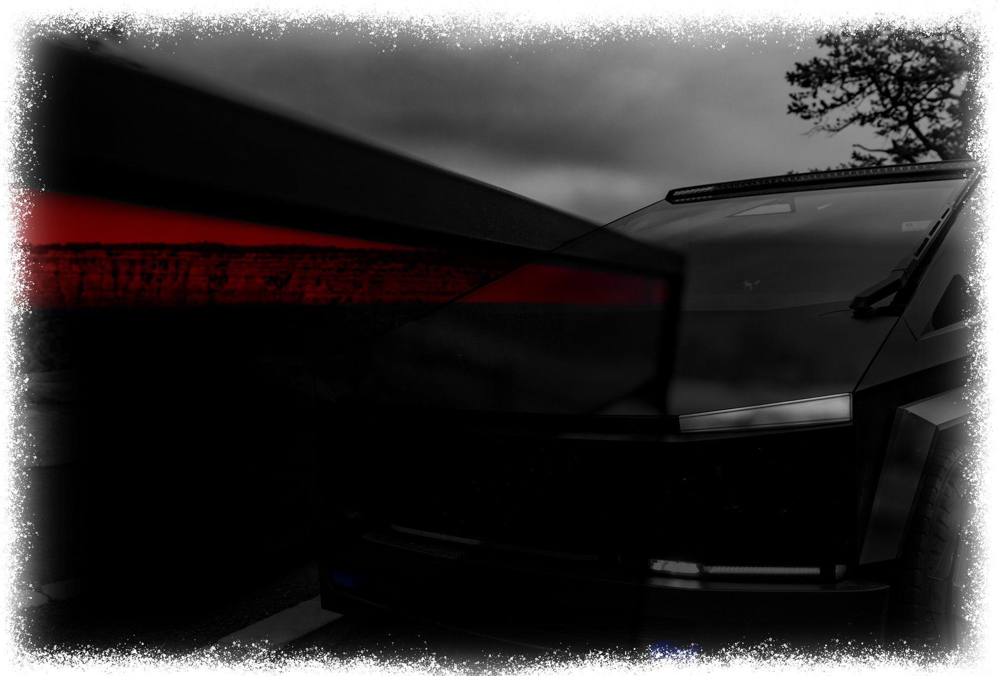 Part of the Cybertruck Black & White Collection. This scene features a composite of Cybertruck images by one of the many lookout points at the Grand Canyon South Rim.